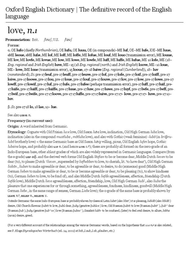 Love N 1 Oxford English Dictionary Languages